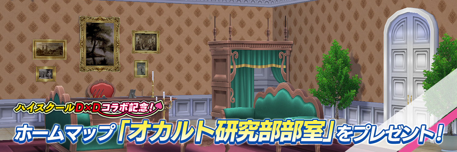 「ハイスクールD×D HERO」で登場した「オカルト研究部部室」がコラボホームマップとして登場!配布期間中にログインしてコラボ記念のホームマップとジオラマを手に入れよう!