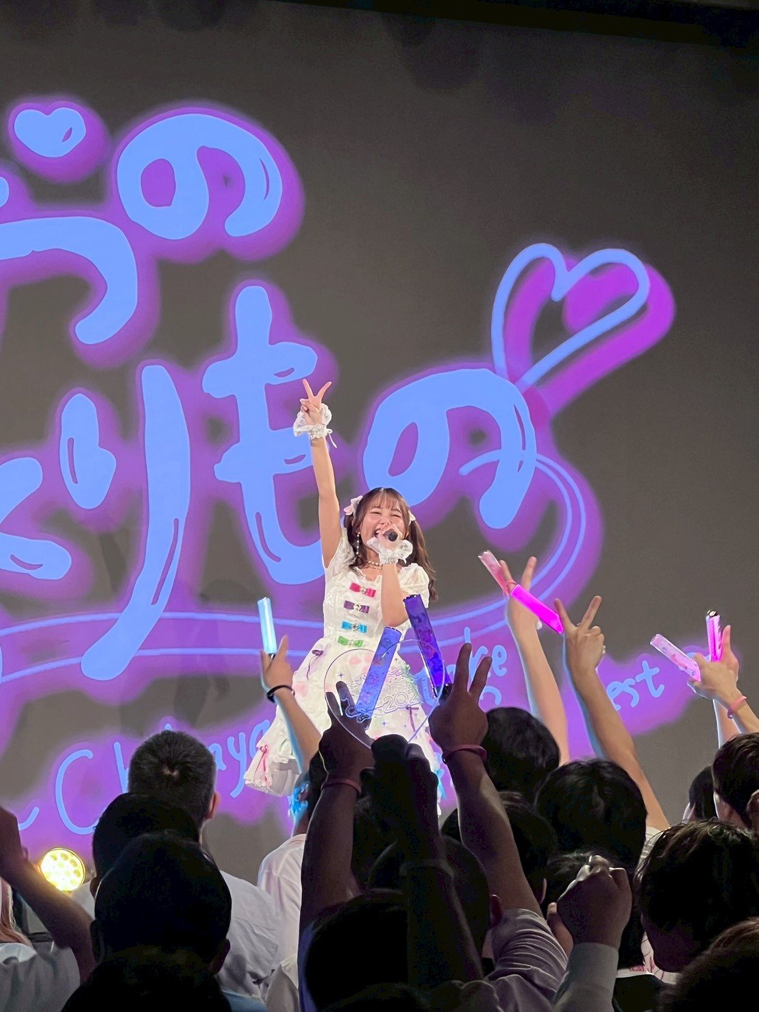 最初のMCでは「今日、26歳になりました! お誕生日当日にライブができること、嬉しい気持ちでいっぱいです!今日はみんなへのありったけのありがとうの想いを、お歌に、言葉に込めてお届けできたらと思います。最後まで全力で楽しんでください。よろしくおねがいします!」と感謝を伝えます。すると、客席のあちこちで、小さなプリキュアたちも吉武さんに向かって手を振り始めます。それに気づいた吉武さんが「小さなお友だちのみんなも見えてるよ〜!」と笑顔で手を振り返すと、前列の大人たちがすっとしゃがんで視界を開けるという優しい光景も印象的でした。