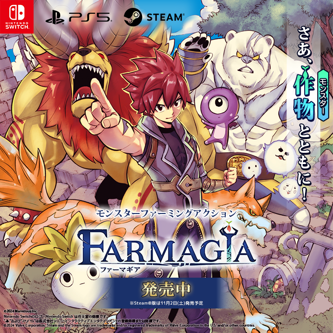 真島ヒロ×マーベラスが贈る完全新作アクションゲーム『FARMAGIA(ファーマギア)』11月1日(金)発売決定!予約受付中